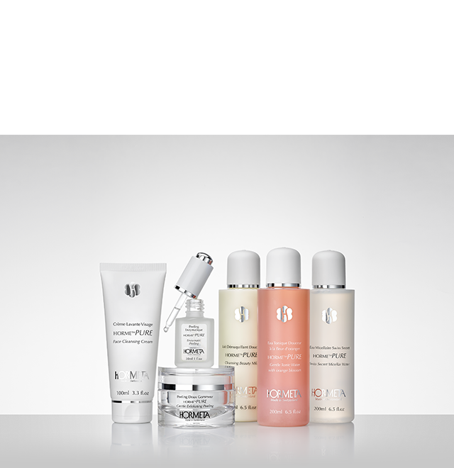 The indispensable step to a beautiful, healthy skin. Softly cleansed, cleared and toned, the skin is primed and ready to be pampered. Enriched with HORMETA’s specific trace elements complex, HormePURE products include key active ingredients to reveal a clear and neat skin, eliminate dead cells and refine skin texture for restored tonicity and radiance.
